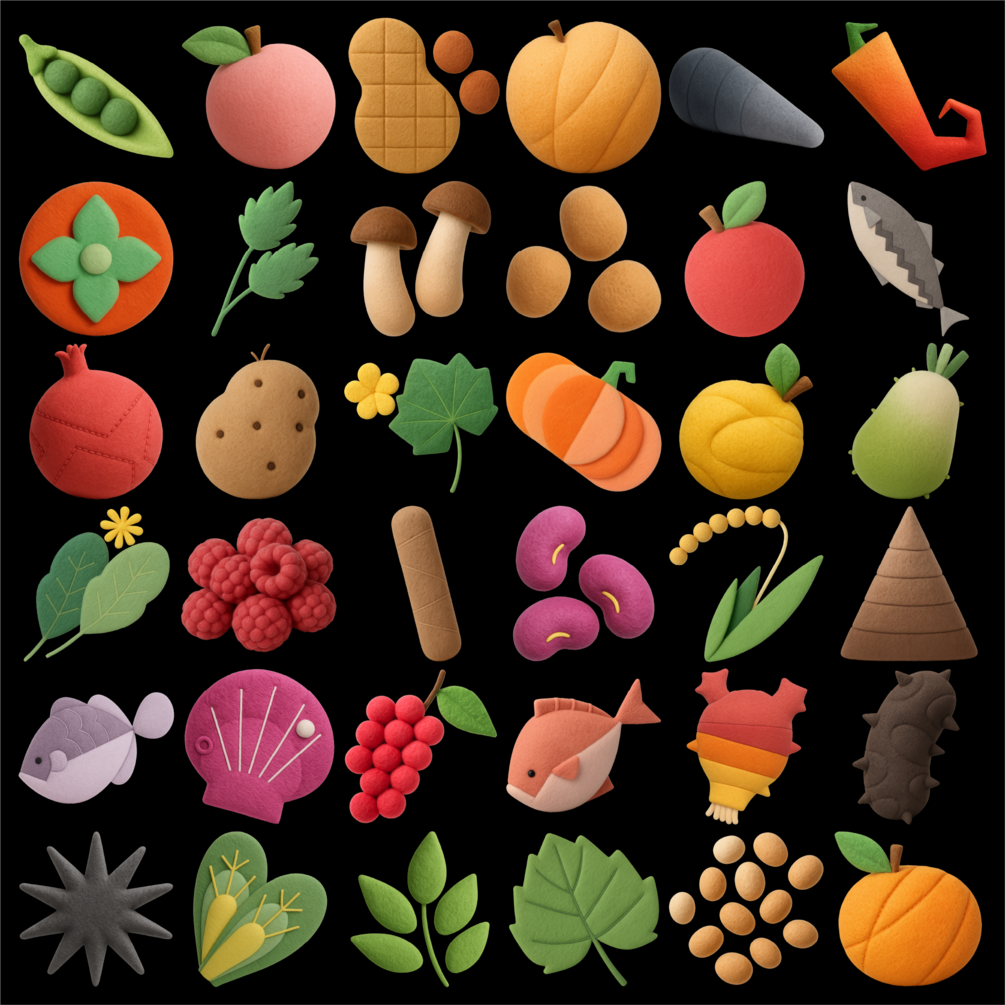 This 3D icon features a soft, wool-textured representation of a food ingredient, blending cozy fabric aesthetics with culinary elements. The form maintains the recognizable shape of the ingredient while covered in a fuzzy, fiber-rich wool surface, evoking warmth and comfort. Light scattering across the fibrous texture adds depth, making the icon feel tactile and handcrafted, like a plush toy inspired by cooking.